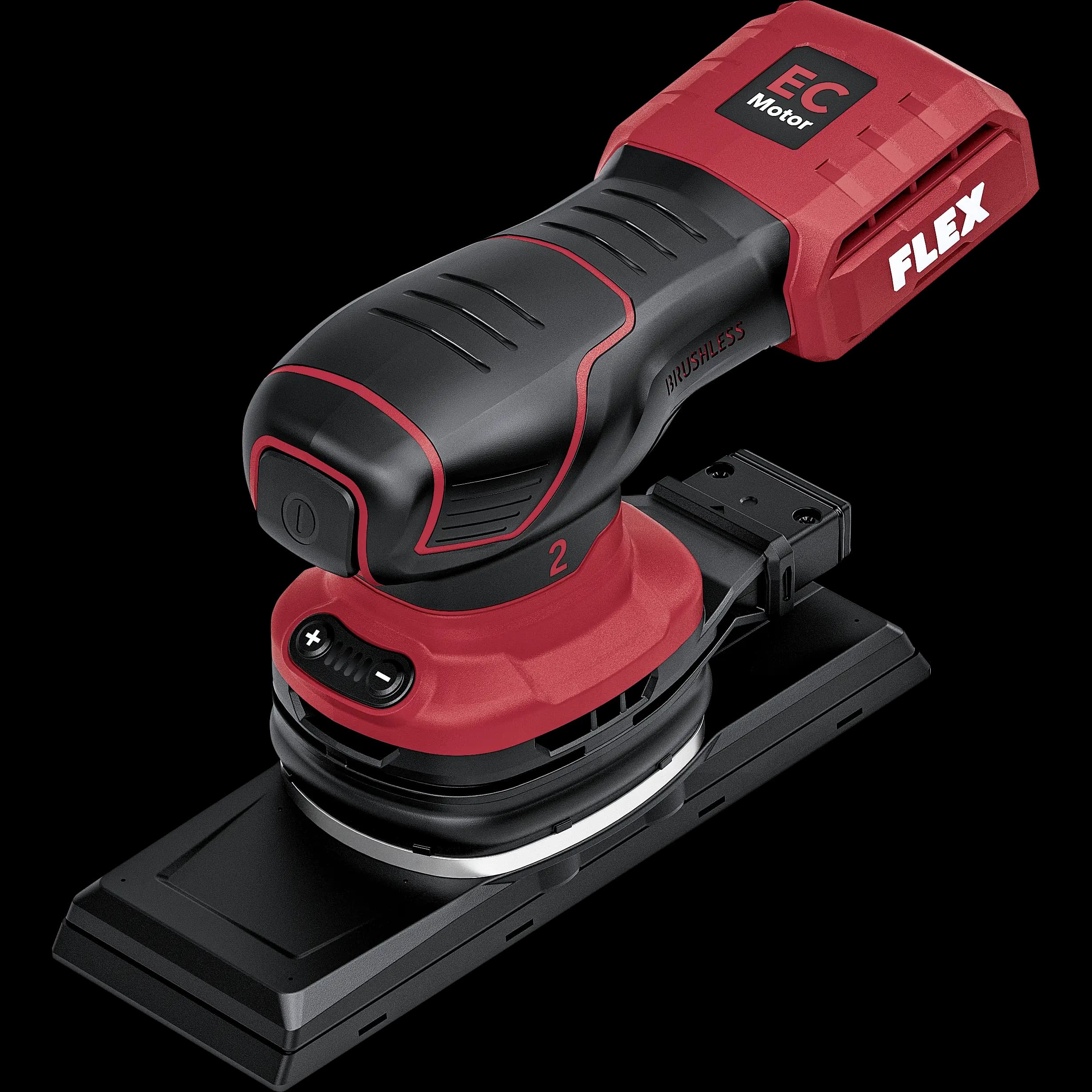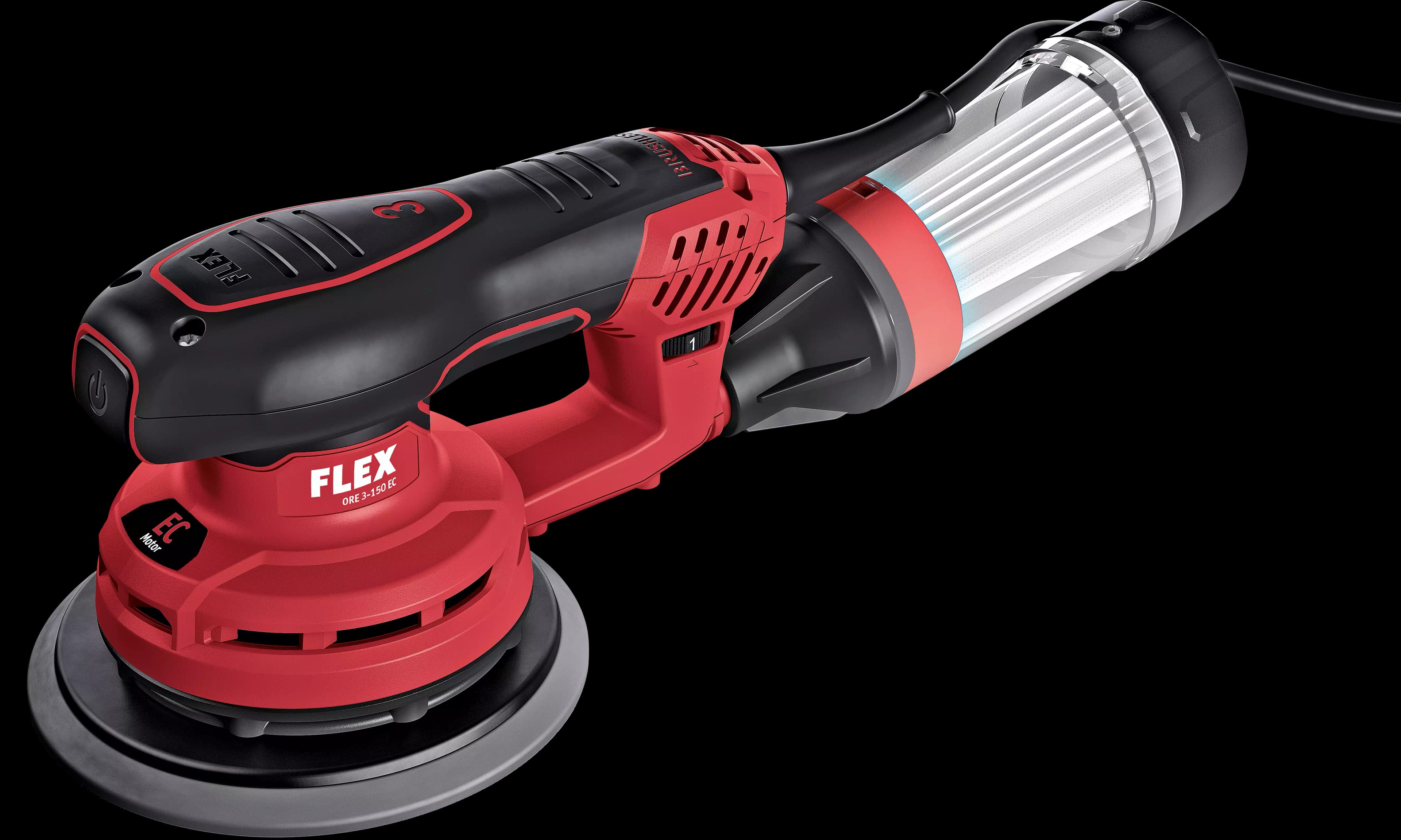 The hook and loop backing pad has a multi-hole system onto which all other commercially available pads fit, as well as FLEX pads. The connection for a suitable vacuum cleaner guarantees efficient extraction and dust-free working.